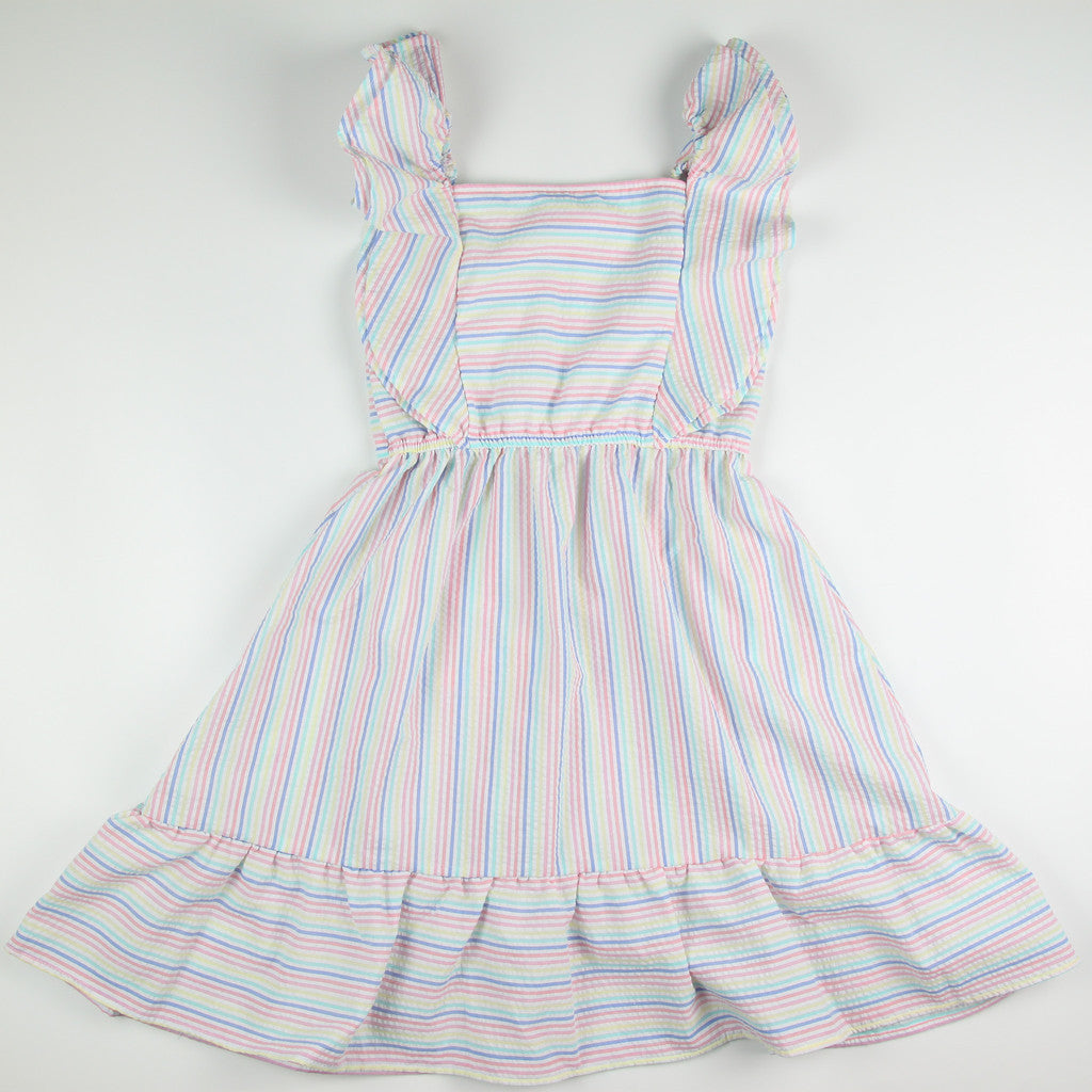 Noonie - Girls Dress (2-12Y) - Cotton Ruffled Dress - Seersucker - Kids Outfit for Girls